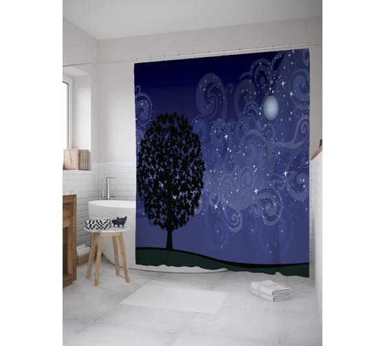Штора (занавеска) для ванной JoyArty "Звезды и планеты на небе" из сатена, 180х200 см с крючками, sc_61976