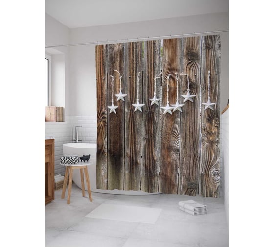 Штора (занавеска) для ванной JoyArty "Звезды на веревочках" из сатена, 180х200 см с крючками, sc_37698