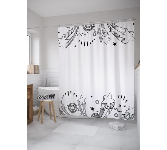 Сопутствующие товары для шторки-занавески JOYARTY Звезды зентангл из сатена, 180х200 см с крючками