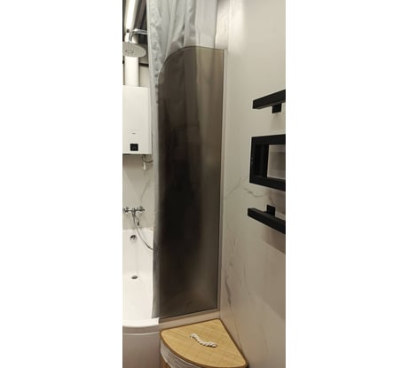 Шторка выполнена из высококачественного закаленного стекла, которое не только отличается прочностью, долговечностью и устойчивостью к внешним воздействиям, но и обеспечивает надежную защиту от брызг воды.