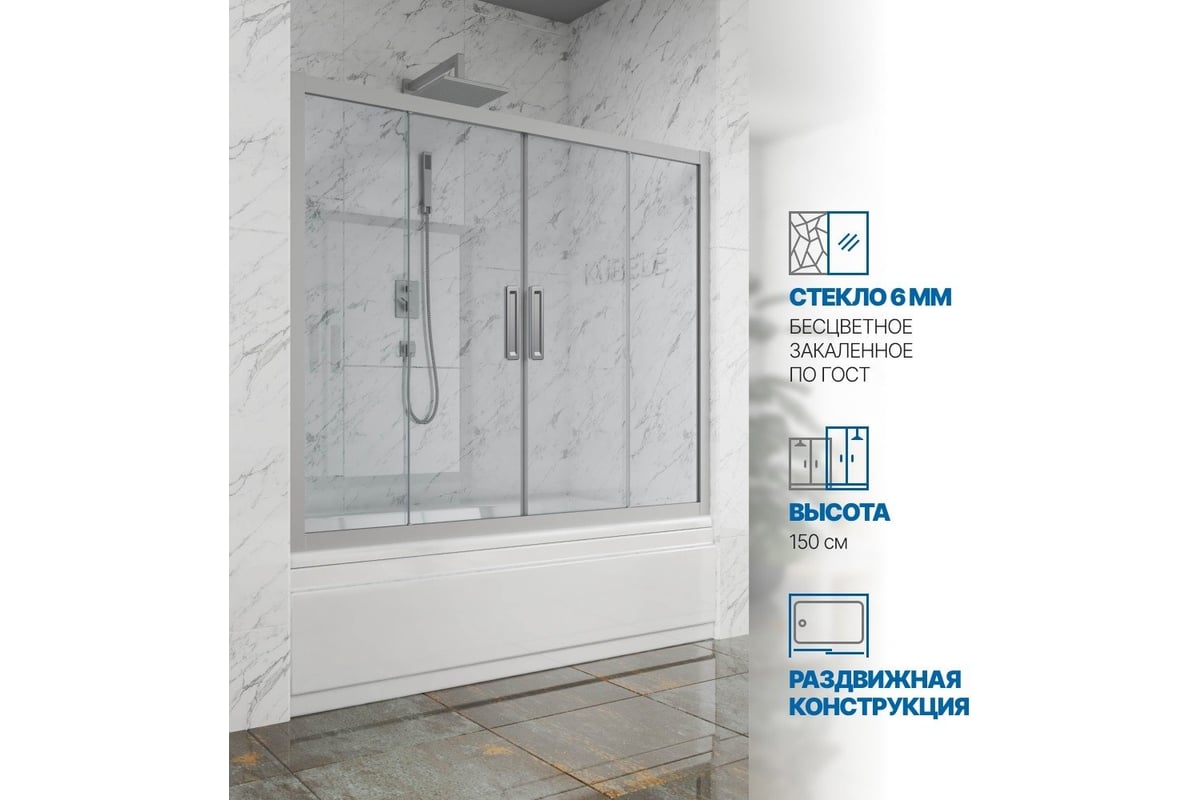 Шторка на ванну GuteWetter gwmpkb019p4 165x150 см, профиль хром матовый, стекло бесцветное закаленное 6 мм 4698031941124
