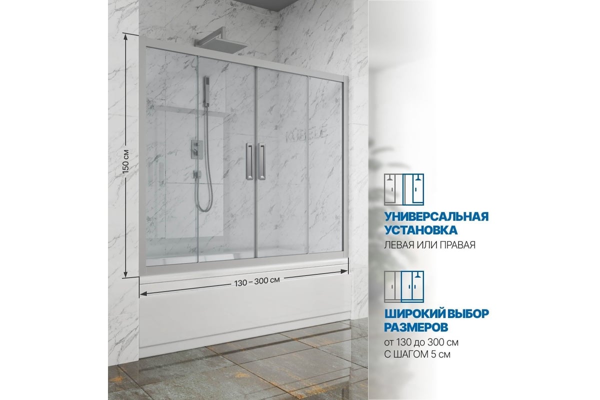 Шторка на ванну GuteWetter gwmpkb019p4 240x150 см, профиль хром матовый, стекло бесцветное закаленное 6 мм 4698031941278