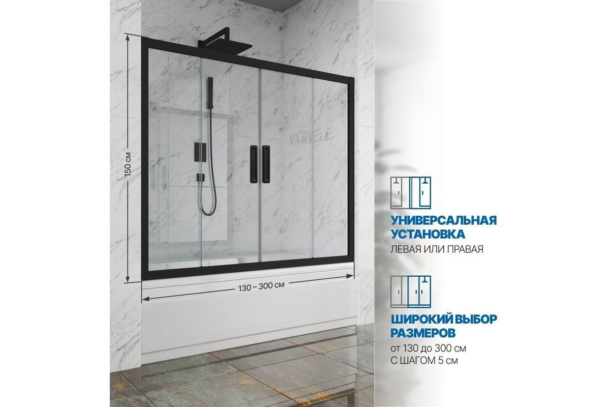 Шторка на ванну GuteWetter gwmpkb019p4 255x150 см, профиль черный матовый, стекло бесцветное закаленное 6 мм 4698031942701