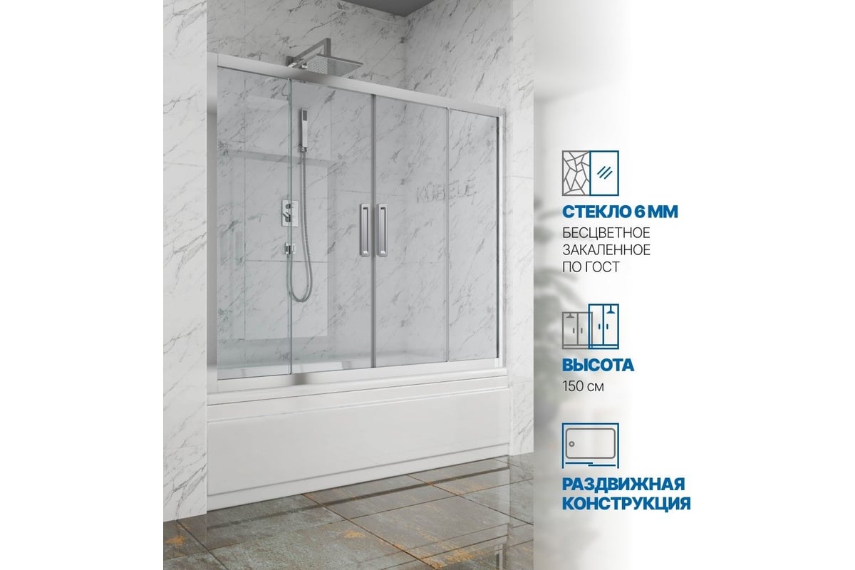 Шторка на ванну GuteWetter gwmpkb019p4 265x150 см, профиль хром блестящий, стекло бесцветное закаленное 6 мм 4698031942022