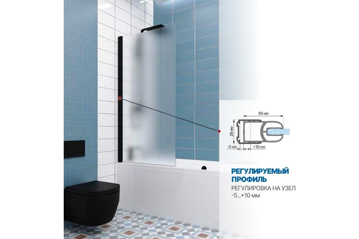 Шторка на ванну одностворчатая поворотная в обе стороны GWMPKB020P601 производства фабрики GuteWetter.x000D Шторка на ванну GWMPKB020P601 очень качественное и экономичное решение для любой ванны. Регулируемый профиль обеспечивает быстрый монтаж и хорошую герметичность.x000D Внимание! Шторка предназначена для всех видов ванн. Возможен левый и правый монтаж.x000D x000D Характеристикиx000D - Длина, см — 55x000D - Высота, см — 150x000D - Цвет профиля и фурнитуры — черный матовыйx000D - Цвет стекла — матовыйx000D - Толщина стекла, мм — 6x000D - Конструкция — распашнаяx000D - Регулировка профиля, мм — +-20
