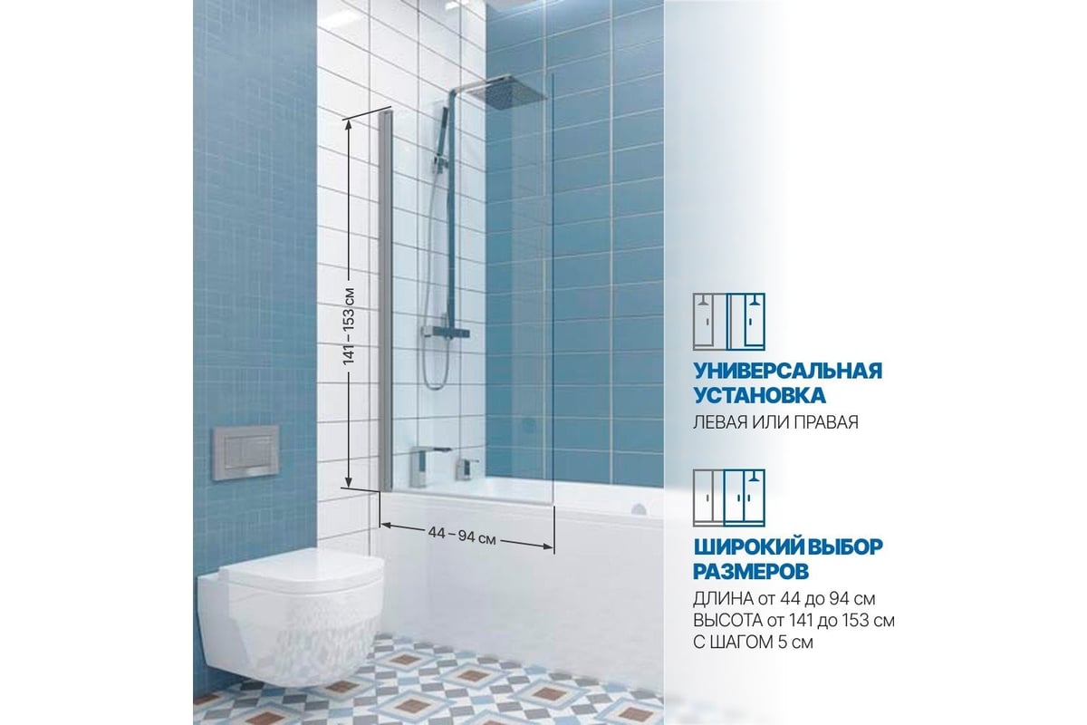Шторка на ванну GuteWetter gwmpkb020p601n 61x141 см, профиль хром матовый, стекло бесцветное закаленное 6 мм 4698032451592