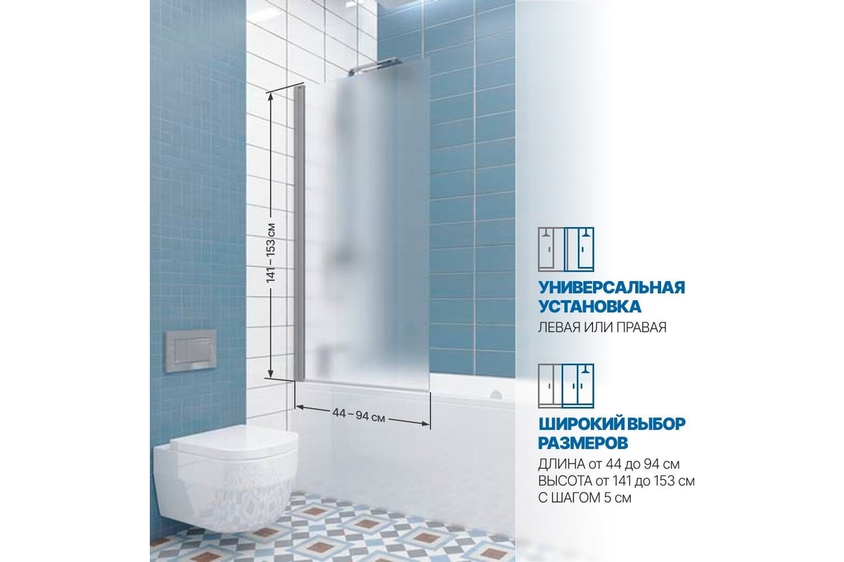 Шторка на ванну GuteWetter gwmpkb020p601n 75x141 см, профиль хром матовый, стекло матовое закаленное 6 мм 4698032453121