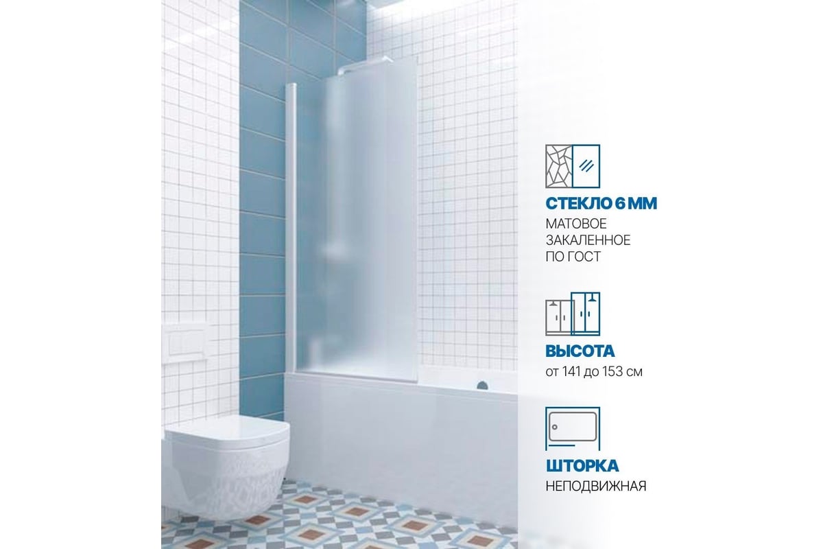 Шторка на ванну одностворчатая неподвижная GWMPKB020P601N производства фабрики GuteWetter.x000D Шторка на ванну GWMPKB020P601N очень качественное и экономичное решение для любой ванны. Регулируемый профиль обеспечивает быстрый монтаж и хорошую герметичность.x000D Внимание! Шторка предназначена для всех видов ванн. Возможен левый и правый монтаж.x000D x000D Характеристикиx000D - Длина, см — 76x000D - Высота, см — 141x000D - Цвет профиля и фурнитуры — белый матовыйx000D - Цвет стекла — матовыйx000D - Толщина стекла, мм — 6x000D - Конструкция — неподвижная