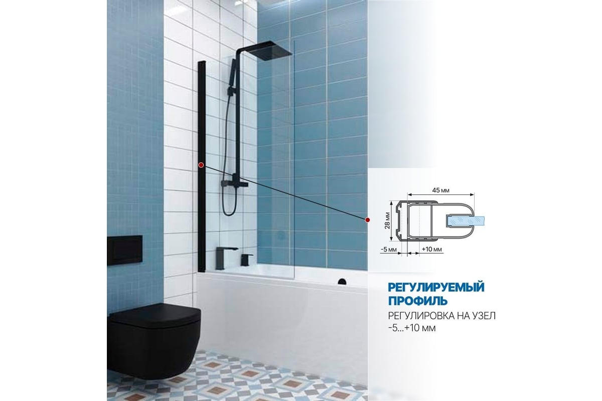 Шторка на ванну GuteWetter gwmpkb020p601n 85x141 см, профиль черный матовый, стекло бесцветное закаленное 6 мм 4698032454258
