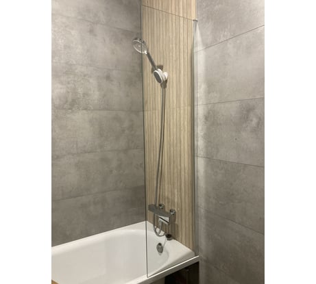 Выбрал данное стекло, так как нужна была небольшая ширина и утолщенное. В установке довольно всё просто, делал всё с использованием присоски и в резиновых перчатках.. Перед установкой низ стекла по сторонам и борт ванны проклеил малярным скотчем, чтобы не размазывать сильно герметик по стеклу и борту ванной. После установки внутренную сторону стекла помыл очистителем, нанес средство от капель и после этого на стекле капель воды почти не остается. Если бы было такое матовое стекло, то было бы лучше, но у них только прозрачные стекла оказались.