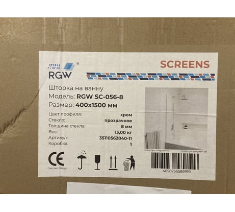 Шторка на ванну RGW 40x150 SC-056-8 Хром/Прозрачное/8 мм 35110562840-11