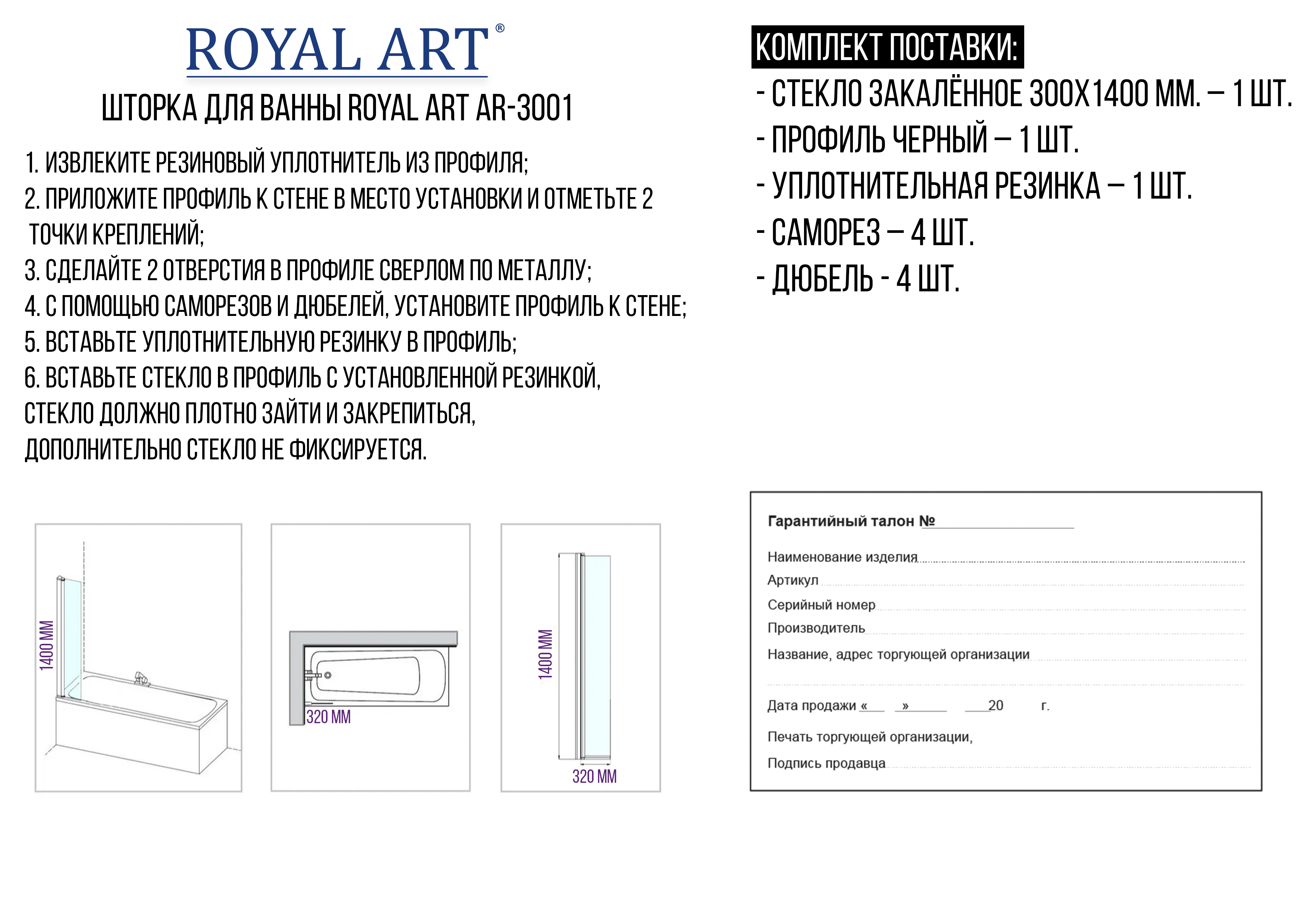 Шторка ROYAL ART 320x1400 мм, профиль полированный черный AR-3001