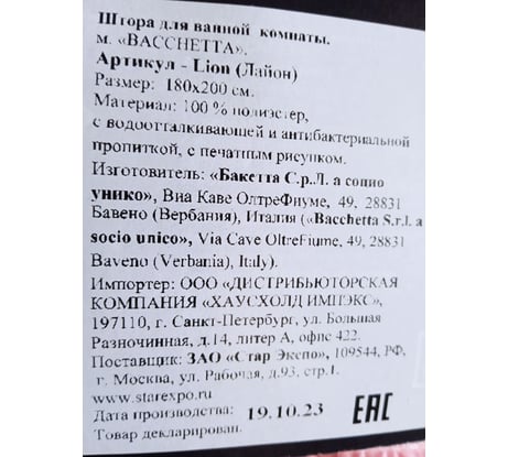 Сопутствующие товары для шторки Bacchetta Lion 180x200 см