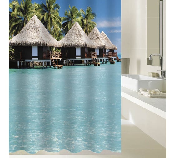 Шторка в ванную комнату BRIMIX фотопечать, РАЙСКИЙ ОСТРОВ 02-14