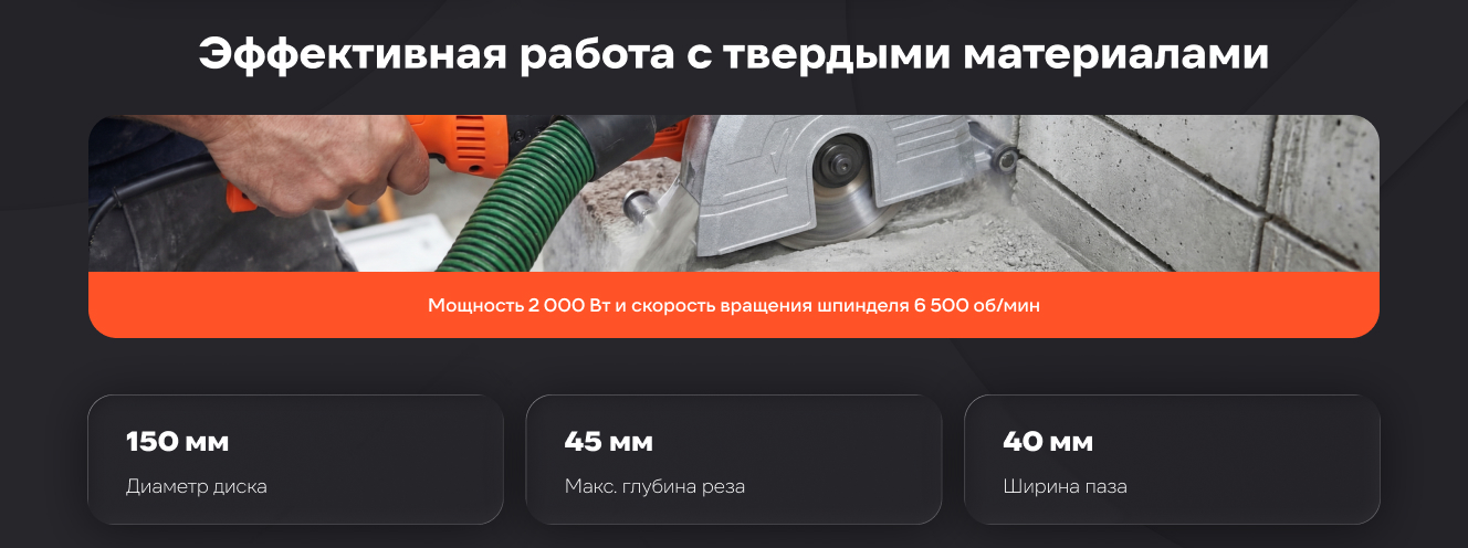 Безусловно хороший инструмент, пережил прокладку электрики в двухкомнатной хрущевке. Так же комплектные диски особо не износились, что так же несомненный плюс. Прошел 50 метров шторобы 50/50 жб/газобетон. Достаточно увесистый и требует времени на остывание после интенсивной работы. Как инструмент на раз для ремонта своими руками- однозначно брать. Как инструмент для профессиональной деятельности лучше брать дорогой штроборез, а этот можно использовать в начале карьеры. Всем самураям хорошего пути!