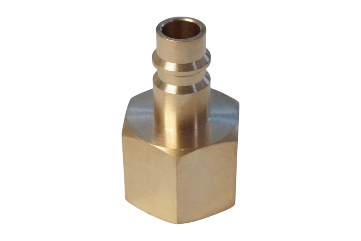Латунный переходник "папа" быстросъемный с присоединительным размером внутренней резьбы 1/2". Предназначен для установки на входе некоторых пневмоинструментов и их присоединения к шлангам через быстросъемное соединение "мама". Латунный корпус исключает возможность появления коррозии.
