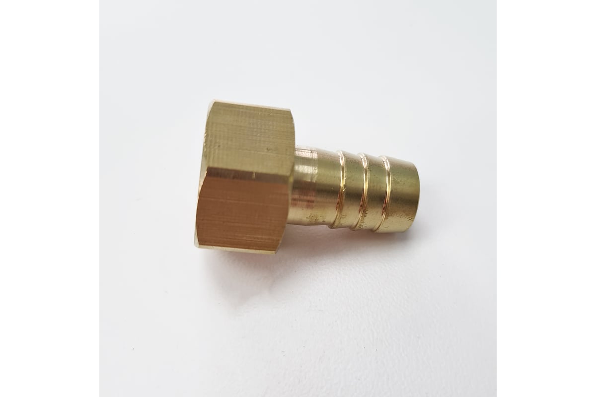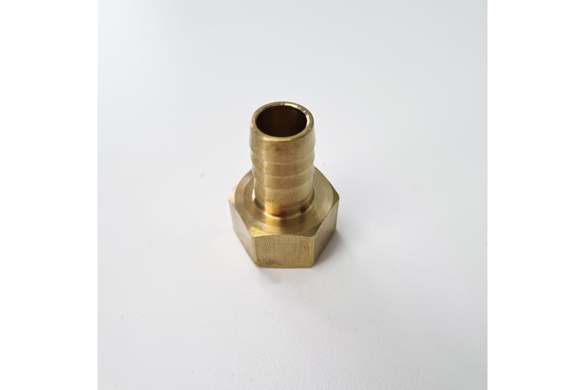 С одной стороны штуцера находится внутренняя резьба 1/2 дюйма, с другой стороны - выход на шланг типа "елочка" 14 мм. Для надежности соединения шланг дополнительно закрепляется хомутом подходящего диаметра (в комплект не входит).