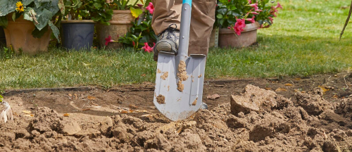 - Широкий упор для ног Обеспечивает идеальную передачу силы нажатия на лопату и защищает от соскальзывания