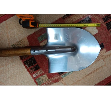 лопата полный аналог ЗУБР ПРОФИ-5, покупал обе, похоже делаются в одном месте, отличаются только штампом с названием, впечатления – достаточно прочная, быстро ржавеет на местах где снимается лак, треугольная часть штыка за ребрами немного отогнута назад и еще больше немного отгибается (упруго, но не сгибается) под нагрузкой, на прямом черенке сидит ровно, но из-за слегка отогнутого наконечника получается что штык немного отклонён назад и из-за этого для перекопки, например, неудобна
