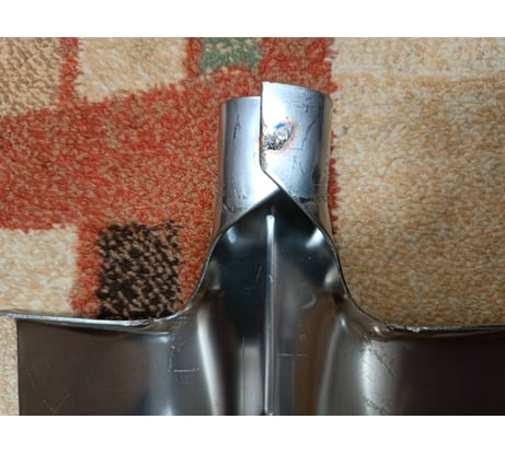 Обхват черенка сведен кое-как (смотри фото). Также пришлось доработать и сделать второй шуруп для черенка, поскольку штатное отверстие на обхвате находится далеко и не понятно проектировщики этой лопаты физику учили? Окопы копали или картофель сажали?