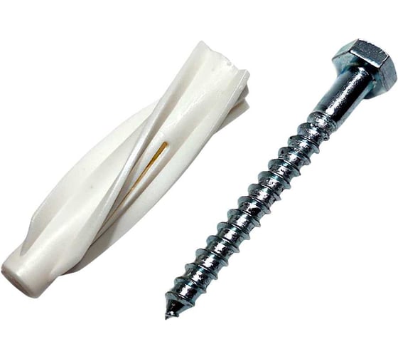Шуруп глухарь с дюбелем винтовым для газобетона - это специализированный набор из двух крепежных элементов, предназначенный для создания высокопрочных соединений в материалах с низкой плотностью (газобетон, пенобетон, поризованные блоки). Дюбель вкручивается в предварительно просверленное отверстие (как шуруп в дерево), формируя в пористом материале прочную резьбу. Затем в дюбель закручивается шуруп-глухарь, который, расширяя дюбель, создает мощное распорное и фрикционное соединение. Крепеж работает не на "распор" в пустоте, а на резьбовое сцепление по всей длине. Установка происходит путем закручивания, что исключает ударные нагрузки, опасные для газобетона. Подходит как для монтажа внутри, так и снаружи зданий. При необходимости конструкцию можно разобрать (выкрутить шуруп), а затем собрать снова без потери несущей способности.