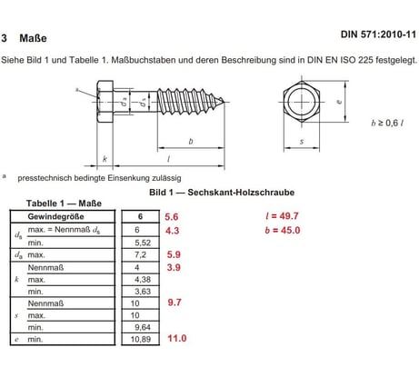 Реальное фото на картинке. Снял размеры и сопоставил со стандартом DIN 571. Головы срываются где-то на усилии 15-20 Н*м (в кач. эксперимента левый свернул вручную ключом, правый шуруповёртом). В итоге: посредственные китайские глухари. Что-то ответственное на эти шурупы я крепить не рекоменду.