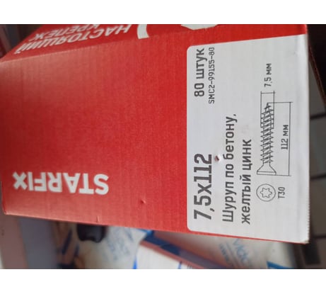 Вопросы и ответы об оцинкованном шурупе по бетону STARFIX 7,5x112 мм, желтый, T30, 80 шт. SMC2-99155-80