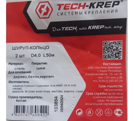 Отзывы о шурупе с кольцом Tech-Krep/Zitar 4,0х50 2 шт - пакете 103894