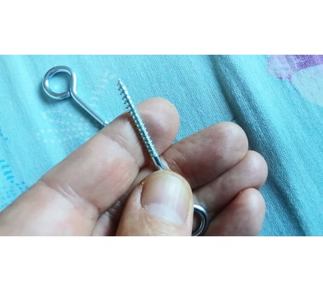 Отличный крепеж, мне очень понравилась сама идея, что из стены уже готовое кольцо торчит, раньше об этом не думал, что так можно. съэкономил кучу времени на изобретение кольца, просто купил вот этот шуруп. В пакете положили две штуки. Держится отлично. Можно сразу в брус крутить, а можно в кирпичную стену с помощью дюбеля. Очень советую, нормальная цена. а главное идея шурупа с кольцом.!