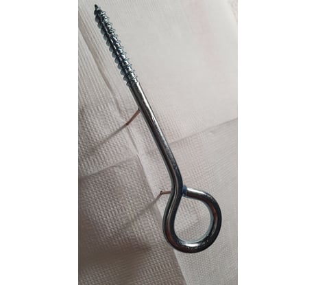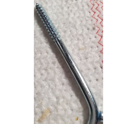 Следует сразу обратить внимание, что первые фотографии на иллюстрациях могут не соответствовать характеристикам товара. В частности, при общей длине изделия в 105мм, резьба занимает всего 35мм (см. фото). Из размеров можно добавить следующее. Длина ввинчиваемой части составляет 80мм. Внутренний диаметр кольца: 16мм. Внешний диаметр: 26мм. Кольцо не круглое, видны места изгибов. Диаметр проволоки: 4.8мм. Резьба ровная, но она не ярко выражена и тупая. Также рекомендую проверять этот метиз на кривизну. Пусть незначительная, но в данном изделии она присутствовала.