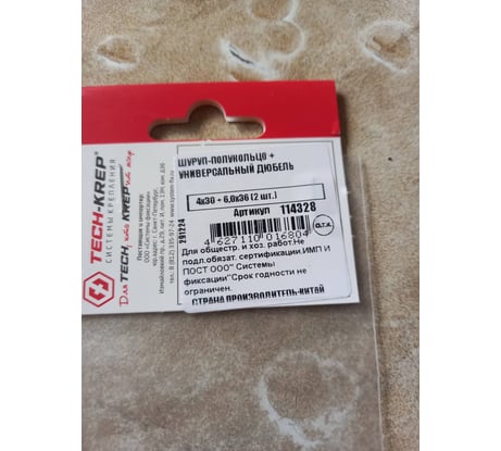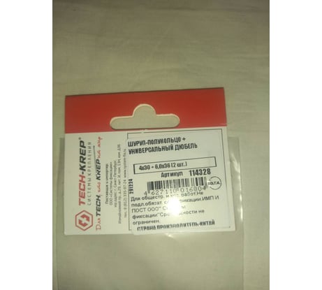 Отзывы о шурупе с полукольцом Tech-Krep/Zitar 4х30 с универсальным дюбелем 6,0х36 2 шт - пакете 114328