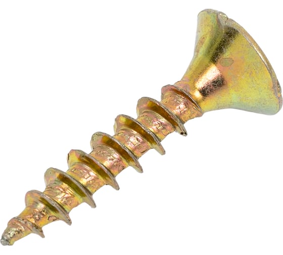 Шуруп потайной для дерева 4,0х20 мм представляет собой стержень с головкой и острым наконечником. Универсальность проявляется в конструкции и области применения. Назначение шурупа — стягивать, скреплять между собой элементы: деревянных, древесностружечных и гипсокартонных плит, из тонкого листового металла. Он аккуратно и быстро вкручивается в материал без предварительного сверления, обеспечивая надежное соединение с основой. Крепежное изделие изготовлено из оцинкованной стали с дополнительной пассивацией. Саморез имеет желтый цвет. Его классическая конструкция включает заостренный цилиндрический стержень с винтовой нарезкой по всей длине, а также потайную головку с крестообразным шлицем PZ. Этот элемент служит для передачи крутящего момента от инструмента – отвертки, шуруповерта при закручивании или выкручивании крепежа. Шуруп потайной для дерева 4,0х20 ЖЦ.