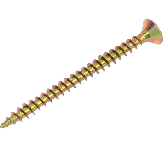 Шуруп потайной для дерева 4,0х50 мм представляет собой стержень с головкой и острым наконечником. Универсальность проявляется в конструкции и области применения. Назначение шурупа — стягивать, скреплять между собой элементы: деревянных, древесностружечных и гипсокартонных плит, из тонкого листового металла. Он аккуратно и быстро вкручивается в материал без предварительного сверления, обеспечивая надежное соединение с основой. Крепежное изделие изготовлено из оцинкованной стали с дополнительной пассивацией. Саморез имеет желтый цвет. Его классическая конструкция включает заостренный цилиндрический стержень с винтовой нарезкой по всей длине, а также потайную головку с крестообразным шлицем PZ. Этот элемент служит для передачи крутящего момента от инструмента – отвертки, шуруповерта при закручивании или выкручивании крепежа. Шуруп потайной для дерева 4,0х50 ЖЦ.