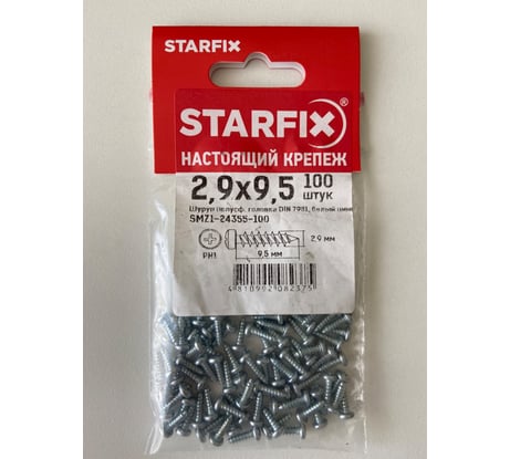 Шуруп STARFIX 2.9x9.5 мм, полусферическая головка, белый цинк, острый, DIN 7981, 100 шт. в зип-локе SMZ1-24355-100