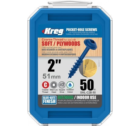 Отзывы о шурупах KREG с крупным шагом, Blue Kote, 2", 50 шт. SML-C2B-50-INT