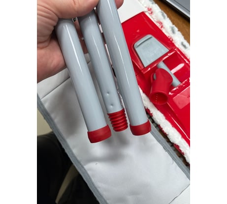 Отличная швабра, чтобы подтереть что-то пролитое или собрать мусор. Есть держатель. Были две насадки в комплекте, на черенке есть крючок, качество хорошее. Пришла быстра, коробка непомятая.