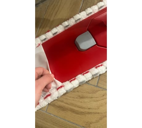 Надежное крепление насадки в виде карманов обеспечивает устойчивость и удобство при смене. Насадка выполнена из плотной микрофибры с абразивным ворсом по всей поверхности, она эффективно справляется с пылью, грязью и пятнами даже без химии.