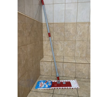 Добротная для сухой и влажной уборки. Прошита надежно, не должны порваться кармашки по идее. При использовании не раскручивается. Единственное, не было никакой доп упаковки, но сама швабра пришла чистой и без царапин, плюс доставщику и магазину