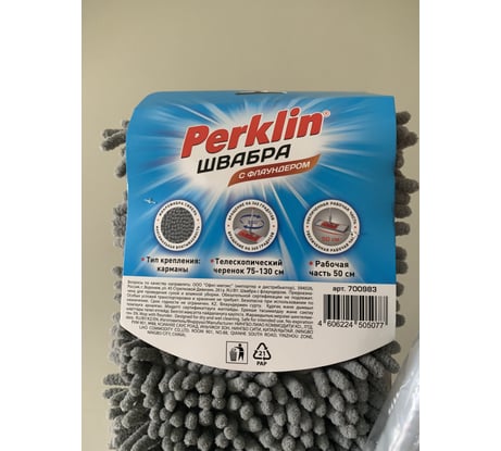 Швабра PERKLIN с флаундером 50см, черенок 75-130см, МОП микрофибра синель (тип К) 700983