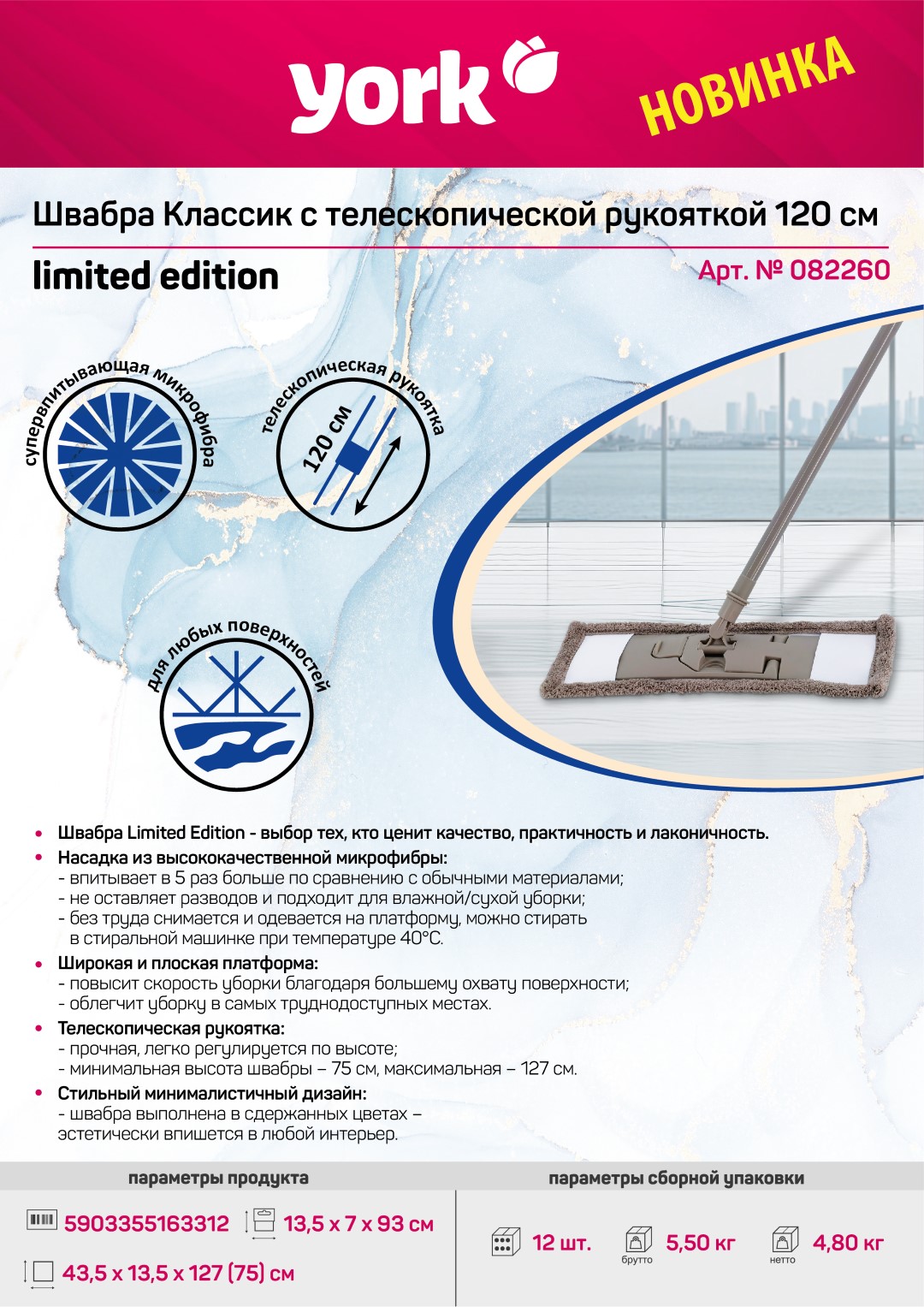 Швабра YORK Классик Limited Edition с телескопической рукояткой 120 см 082260