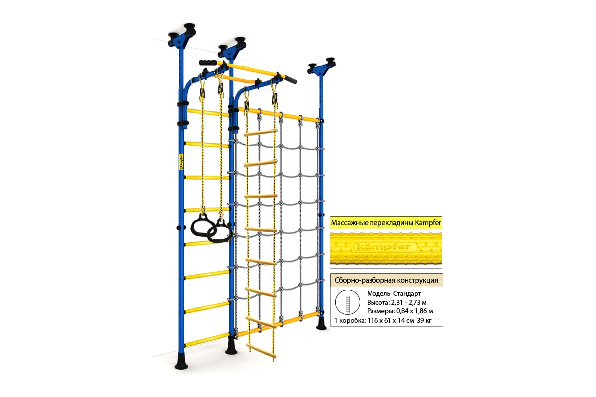 Шведская стенка Kampfer Gridline Ceiling синий/желтый K13245004 хорошо подходит как для самых маленьких детей от 3 лет, так и для подростков и их родителей.