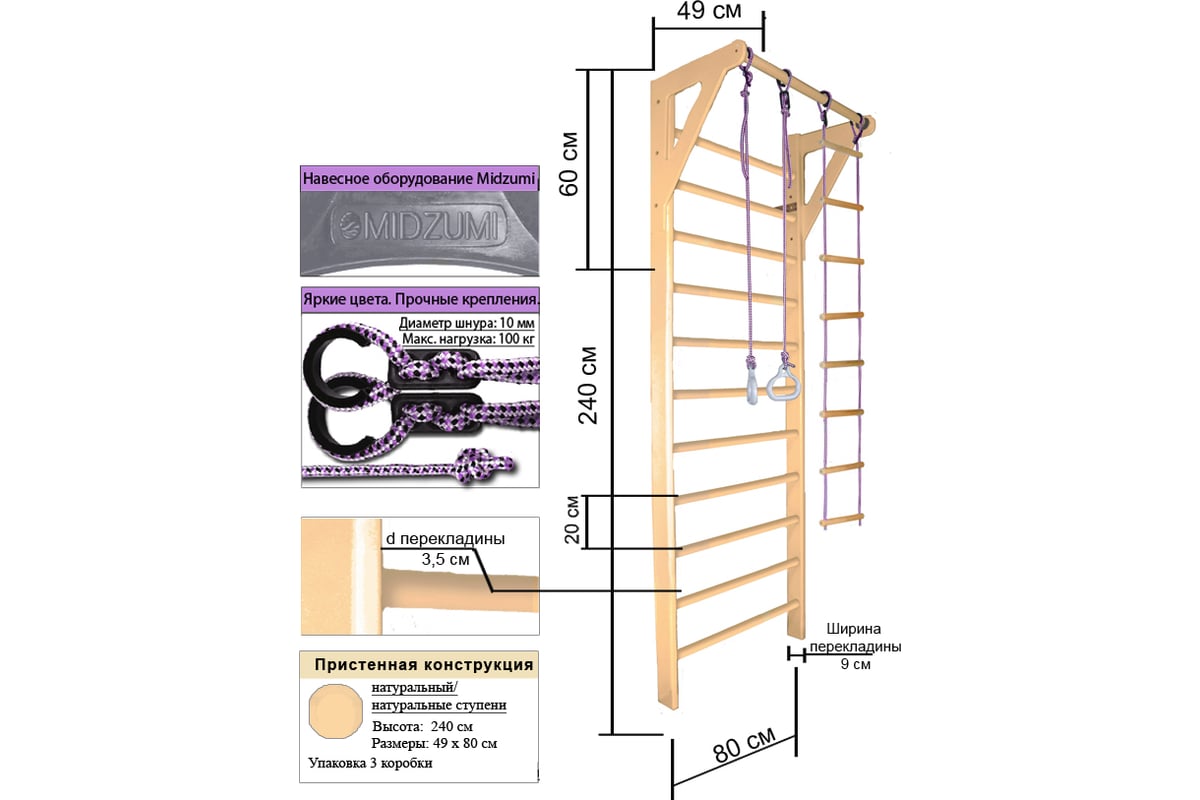 - Габариты комплекса (ДхШхВ): 49 х 80 х 240 см