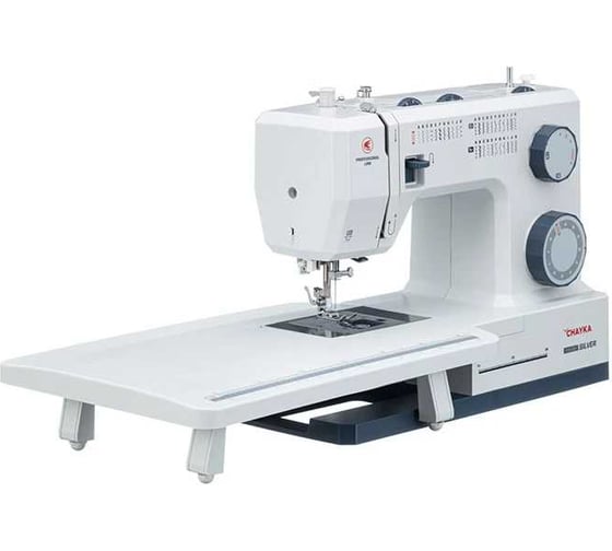 В комплект CHAYKA Silver входит разнообразный набор лапок для комфортного шитья: для втачивания молнии, для вымётывания автоматических петель и для пришивания пуговиц, а также расширительный столик для работы с большими проектами.