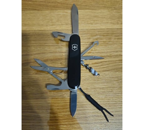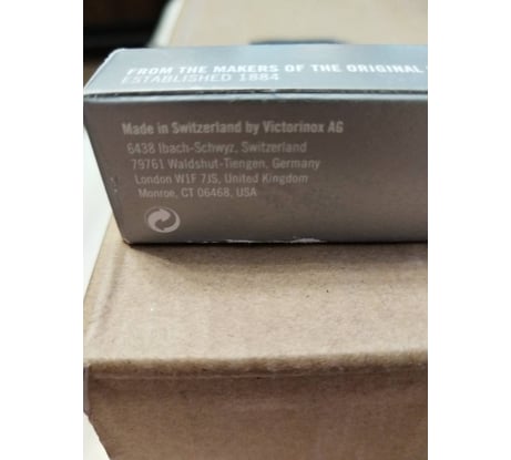 Давно хотел швейцарский нож, долго выбирал и хотел взять другой, но его долго не было в наличии, взял этот и не жалею, постоянно ношу с собой и регулярно выручает. Но!!! На упаковке 2 маркировки и одна говорил что сделано в Швейцарии, а другая что в Китае. В следующий раз, пожалуй, буду искать более надёжный магазин, просто сейчас уж очень хотел быстрее получить нож) Однако несмотря на всё это заточка на всем хорошая, всё режет отлично и всё двигается без люфтов с чёткими стопорами