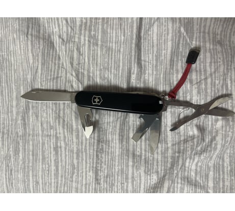 Давно хотел швейцарский нож, долго выбирал и хотел взять другой, но его долго не было в наличии, взял этот и не жалею, постоянно ношу с собой и регулярно выручает. Но!!! На упаковке 2 маркировки и одна говорил что сделано в Швейцарии, а другая что в Китае. В следующий раз, пожалуй, буду искать более надёжный магазин, просто сейчас уж очень хотел быстрее получить нож) Однако несмотря на всё это заточка на всем хорошая, всё режет отлично и всё двигается без люфтов с чёткими стопорами