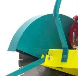 Благодаря наличию пневматической пружины снижается усилие опускания и подъема режущего диска. Специальный указатель и плавная регулировка глубины с помощью штурвала и индикатора позволяет контролировать прямолинейность реза.