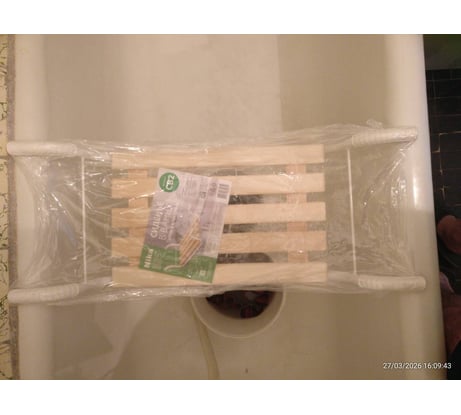 не указан размер ванны в характеристиках товара. дерево ничем не покрыто. в советскую ванну внутренней шириной 58-60см проваливается, надо дорабатывать, чтобы не болталось в широкой ванне, и защищать дерево нутуральной льняной олифой.