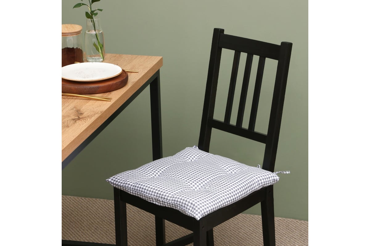 Сидушка на стул Этель "Клеточка" 40x40 см, цвет серый, 100% полиэстер 7810959