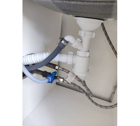 - Отвод для подключения стиральной или посудомоечной машины позволяет сэкономить место и упростить подключение бытовой техники.