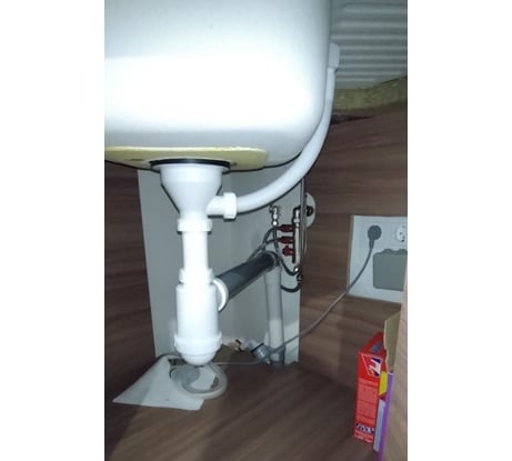 ГЛАВНОЕ - возможность подключения сразу в канализационную трубу d50 без гофры, без переходников и т.п. После сборки нигде не течет. Черезмерного усилия подкручивания к каким-то частям тоже не нужно, как и самого подкручивания. Трубка перелива жесткая, по длине в самый раз - из-за отсутствия провиса, как у некоторых конкурентов, никакой "вони" не будет.
